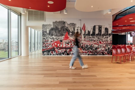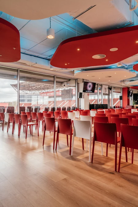 For their business suites, first-division club Royal Antwerp needed a durable floor—one that could withstand heavy use while providing excellent acoustic insulation. After all, when the ball hits the opponent’s net, the cheers are deafening. Our acoustic collection, Nakuru, was the perfect match. The Baboon color adds warmth to the rugged, tough environment. In short, RAFC chose a floor with a natural wood look that reduces both reflection and transmission noise. A winning choice!